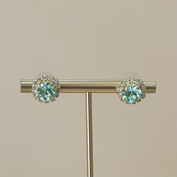 Aretes de post con base de plata con baño de oro de 24k con cristal color verde pastel.