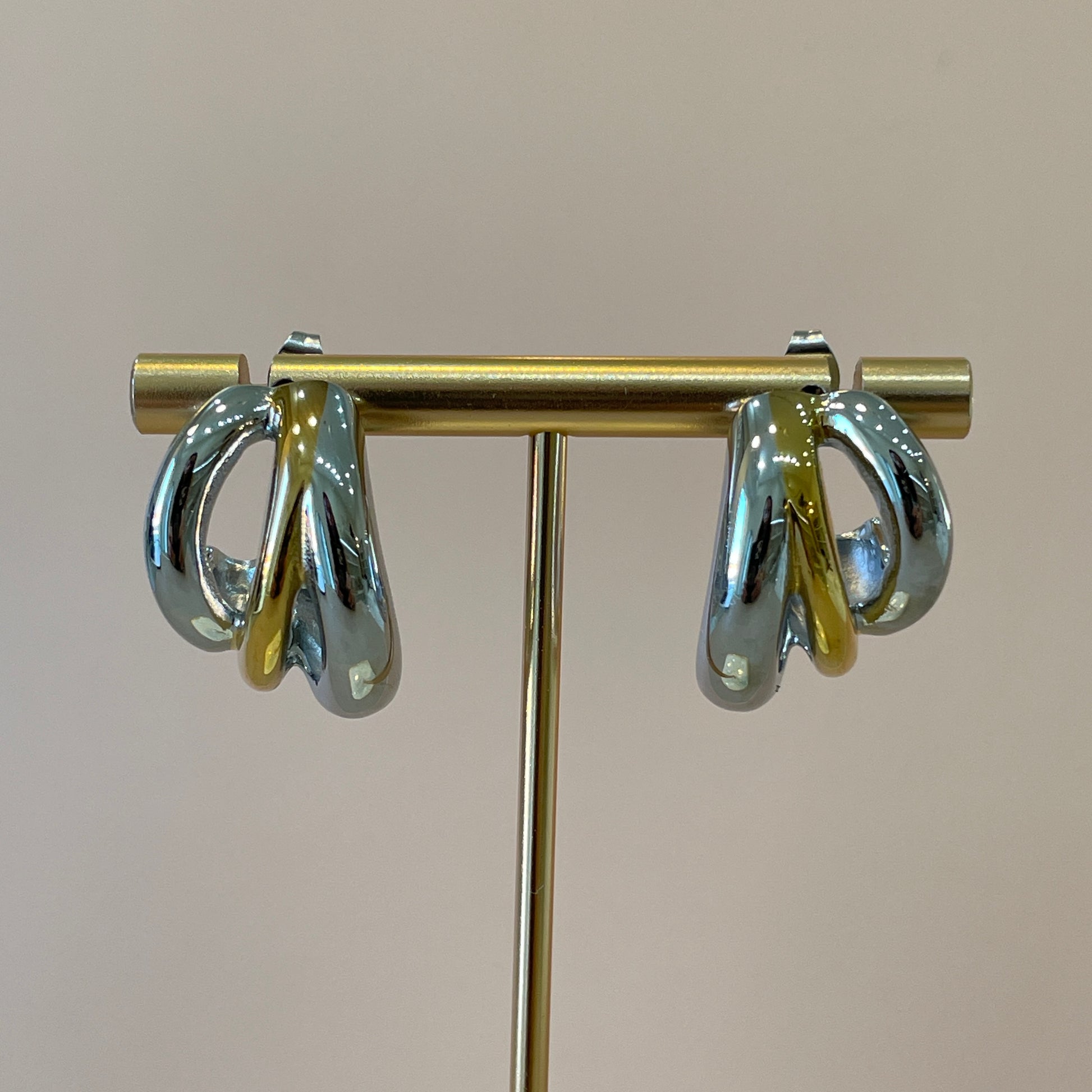 ARRACADAS CHUNKY TRIPLE SILVER GOLD